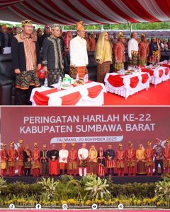 Taliwang, 20 November 2025 (Lenteranews) – Wakil Bupati Sumbawa, Drs. H. Mohamad Ansori, menghadiri puncak peringatan Hari Lahir (Harlah) ke-22 Kabupaten Sumbawa Barat (KSB) yang digelar pada Kamis pagi di Lapangan Graha Fitrah. Peringatan Harlah tahun ini mengusung tema “Bersatu Menuju Sumbawa Barat Luar Biasa”, sebagai penegasan semangat kolaborasi dan akselerasi pembangunan KSB.